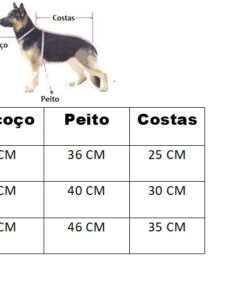 Disponibilizamos uma tabela com as medidas e também uma imagem ensinando a como medir o seu pet. É simples, basta fazer como demostrado na imagem abaixo.