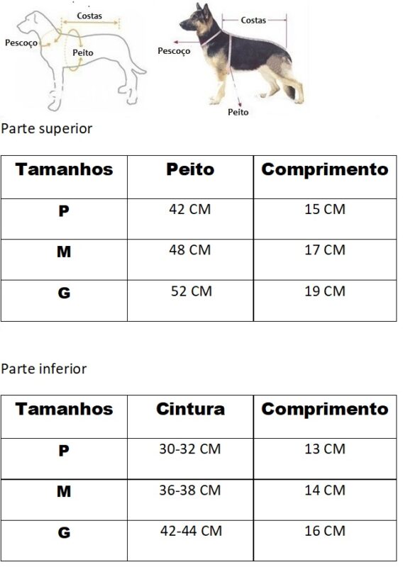 Dimensões da roupa para cachorro: