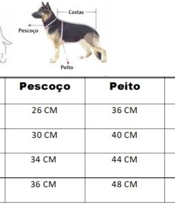 Disponibilizamos uma tabela com as medidas e também uma imagem ensinando a como medir o seu pet. É simples, basta fazer como a imagem está demonstrando.