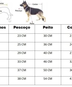 Dimensões da roupa para cachorro: