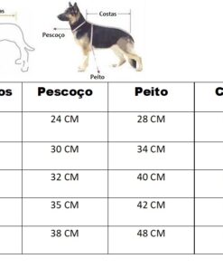 Disponibilizamos uma tabela com as medidas e também disponibilizamos uma imagem ensinando a comer medir o seu pet. É simples, basta fazer como a imagem está demonstrando.