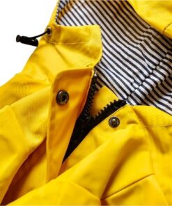 Portanto, é uma peça leve que possui abertura para guia e fechamento por botões de pressão metalizado e zíper. Além disso, ainda vem regulagem no capuz e na barra.