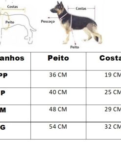 Disponibilizamos uma tabela com as medidas e uma imagem ensinando a medir o seu pet. É simples, basta fazer como a imagem está demonstrando.