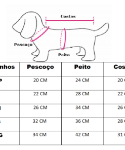Dimensões da roupa para cachorro: