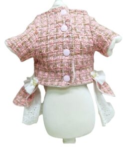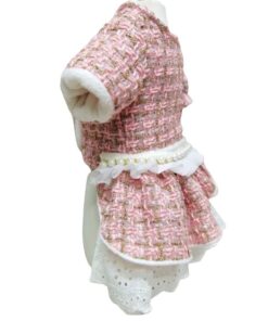 O Vestido foi confeccionado em tecido Tweed e Laise de altíssima qualidade. Além disso, possui abertura frontal, fechamento por botões de pressão, é forrado por dentro oferecendo praticidade e segurança na hora de vestir a sua pet e ainda vem com uma linda estola com detalhes em pérolas deixando a peça ainda mais delicada.