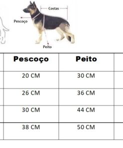 Disponibilizamos uma tabela com as medidas e também uma imagem ensinando a medir a sua pet.