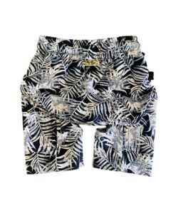 A Bermuda possui elástico na cintura e cordão para regulagem, o tecido é Tactel e não contém elastano em sua composição.