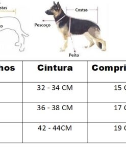 Disponibilizamos uma tabela de medidas e também uma imagem ensinando a medir o seu pet. É simples, basta fazer como na imagem.