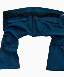 Confeccionado em tecido de excelente qualidade, com gravata borboleta no mesmo tecido, camisa branca embutida no paletó, abertura frontal e fechamento por botões de pressão. Não possui elastano em sua composição.